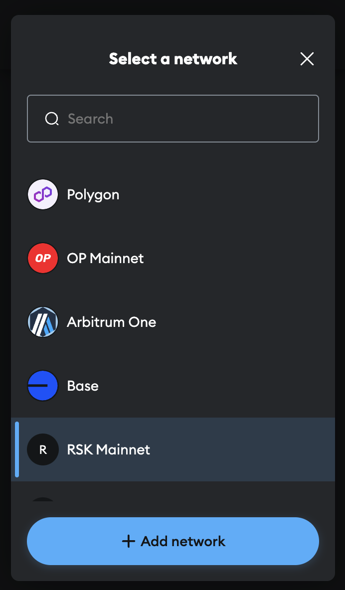 - Click on the buttons below to add Rootstock Mainnet and Rootstock Testnet
